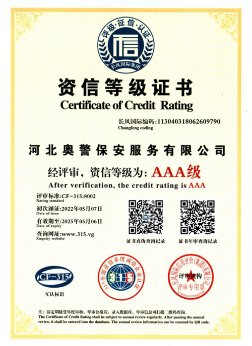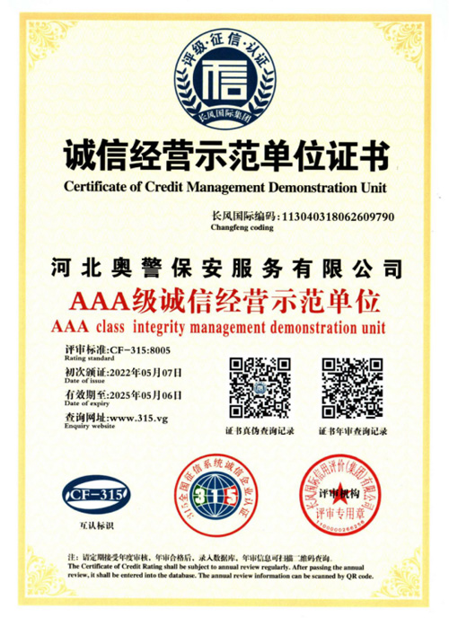 奧警邯鄲保安公司是一家民營保安服務(wù)公司,工商行政管理局登記注冊,獲取相關(guān)等級(jí)資質(zhì)證書,是一家大型的保安連鎖服務(wù)公司。